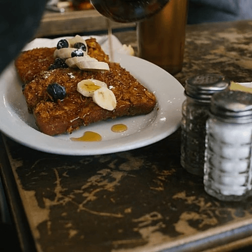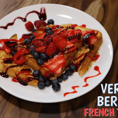 Baked cinnamon french toast topped with our vanilla bean glazed