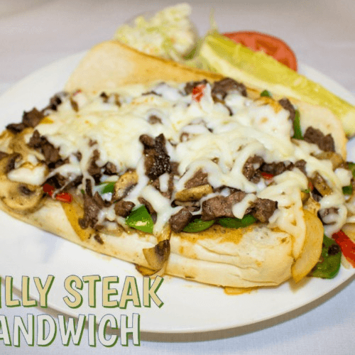 Grilled steak, mushrooms, onion, green peppers, & mozzarella cheese