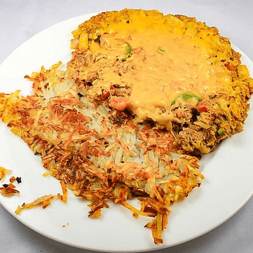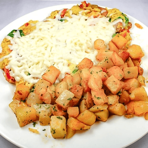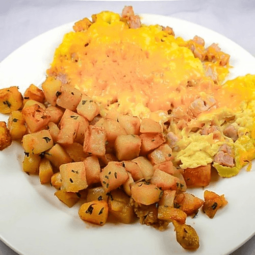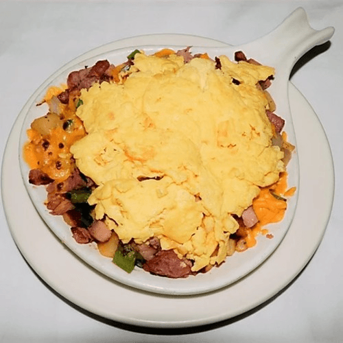 Choice of ham, bacon, sausage, or chicken with onions, mushrooms, and American cheese