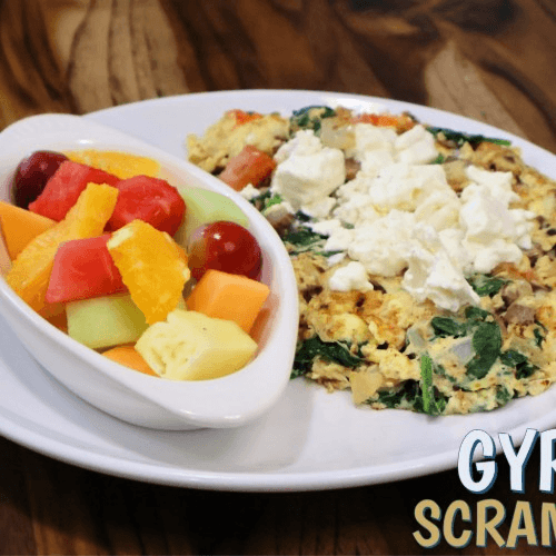 Gyro meat, spinach, tomatoes, onions, and feta cheese