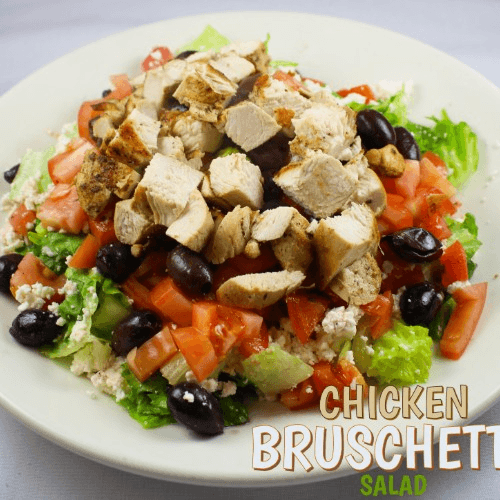 Grilled chicken breast over romaine, diced tomatoes, feta cheese and olives tossed in our vinaigrette and garnished with out pita bread