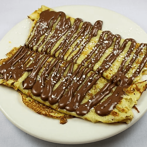 Spinach, mushroom, onions and Cheddar cheese stuffed with crepes and topped with hollandaise sauce